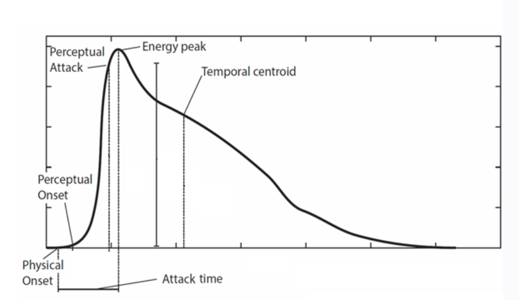 - Attack Time (or Duration): time from Physical Onset to Energy Peak